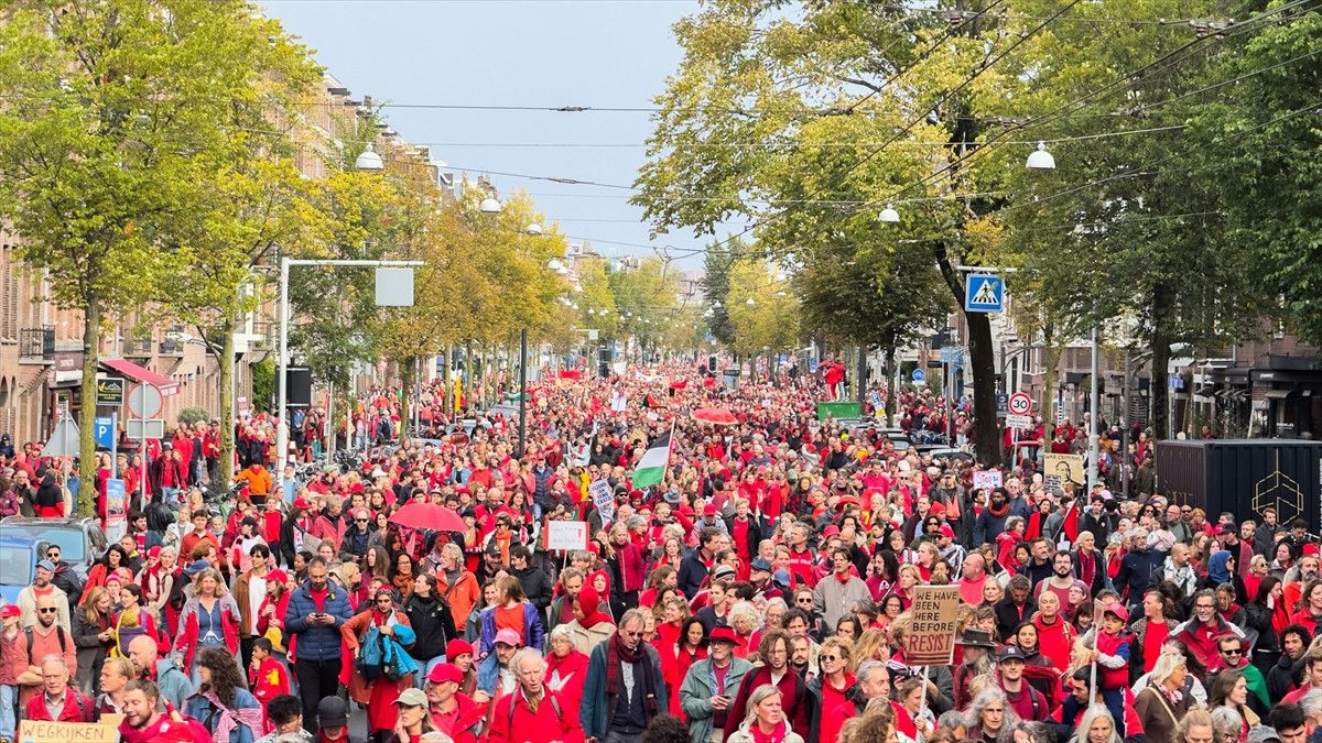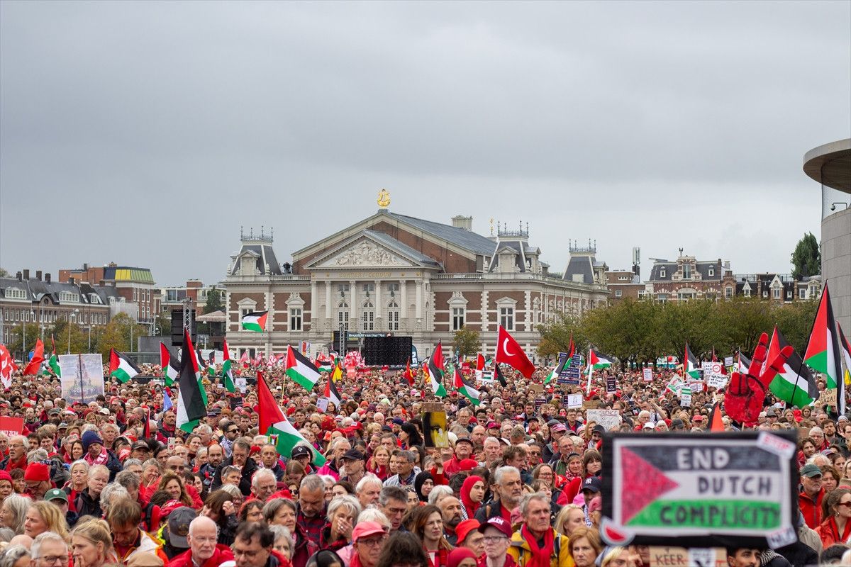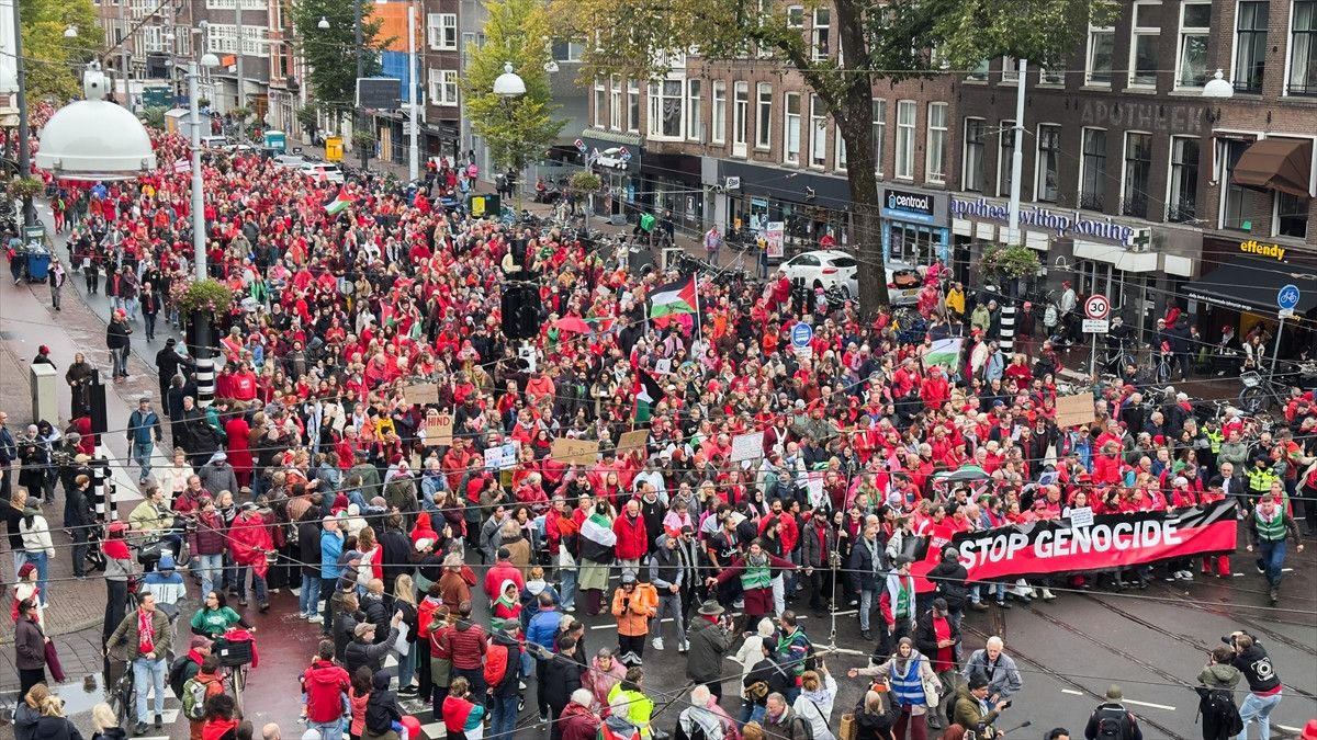 İsrail’e ve destekçisi ülkelere karşı gelen tepkiler giderek artıyor. Hollanda’nın başkenti Amsterdam’da 250 binden fazla kişi, hükümetin İsrail yanlısı politikalarını protesto etti.