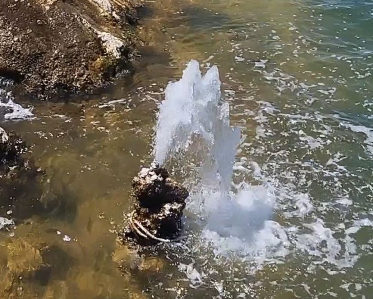 Van’ın Gevaş ilçesine bağlı İnköy Mahallesi sahilinde, göl sularının çekilmesiyle ortaya çıkan mikrobiyalitlerden birinden tatlı su fışkırdığı gözlendi.